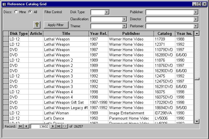 If you want to browse the reference catalog for disc titles then use the File>Open Discs Grid command and select the all option.